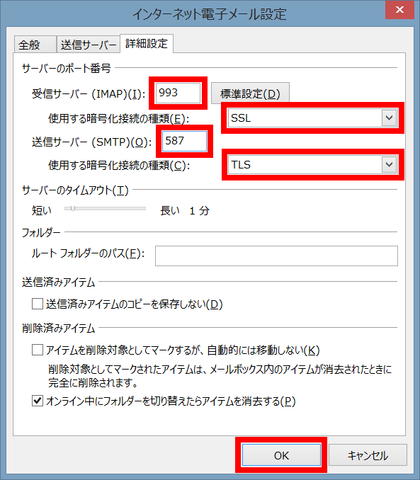メールサービス > メールソフト設定 TOP > Outlook2013(IMAP)
